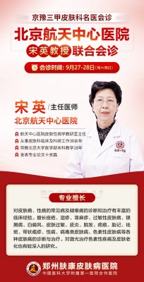 2025年9月27日至28日,针对当前皮肤疾病就诊高峰的严峻挑战,为切实解决省内疑难皮肤病患者的就医需求,郑州肤康皮肤病医院特邀北京资深皮肤科名医宋英教授莅临我院,开展多专家联合门诊,集众所长,为患者提供高效、精准的诊疗方案。