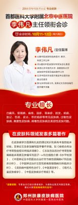 李伟凡教授在皮肤病学领域享有盛誉,有数十年的临床诊疗与科研经验,擅长诊治银屑病、顽固性湿疹、白癜风、痤疮、皮炎、真菌性皮肤病以及各类疑难性皮肤疾病。本次会诊,李伟凡教授将与郑州肤康的专家团队强强联合,通过多对一的深度交流与分析,结合前沿的检测设备,为每一位患者追本溯源,找到病根所在,制定出科学合理的“一人一方”综合治疗策略,避免误诊误治。