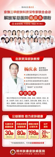 为积极应对就诊高峰状况,让省内诸多皮肤慢性病、疑难病患者得到及时有效的治疗,郑州肤康皮肤病医院特邀解放军总医院医学博士杨庆永教授于2025年11月15日-16日莅临我院联合会诊。